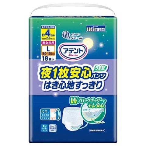 アテント 夜1枚安心パンツ はき心地すっきり 男女共用 L (18枚入)