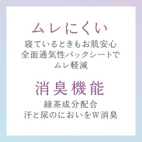 ●寝ている時もお肌安心の全面通気性バックシート採用。ムレ軽減。