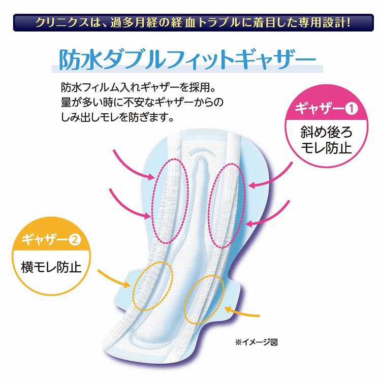 ●「防水ダブルフィットギャザー」でギャザーからの染み出しモレを防ぎます。