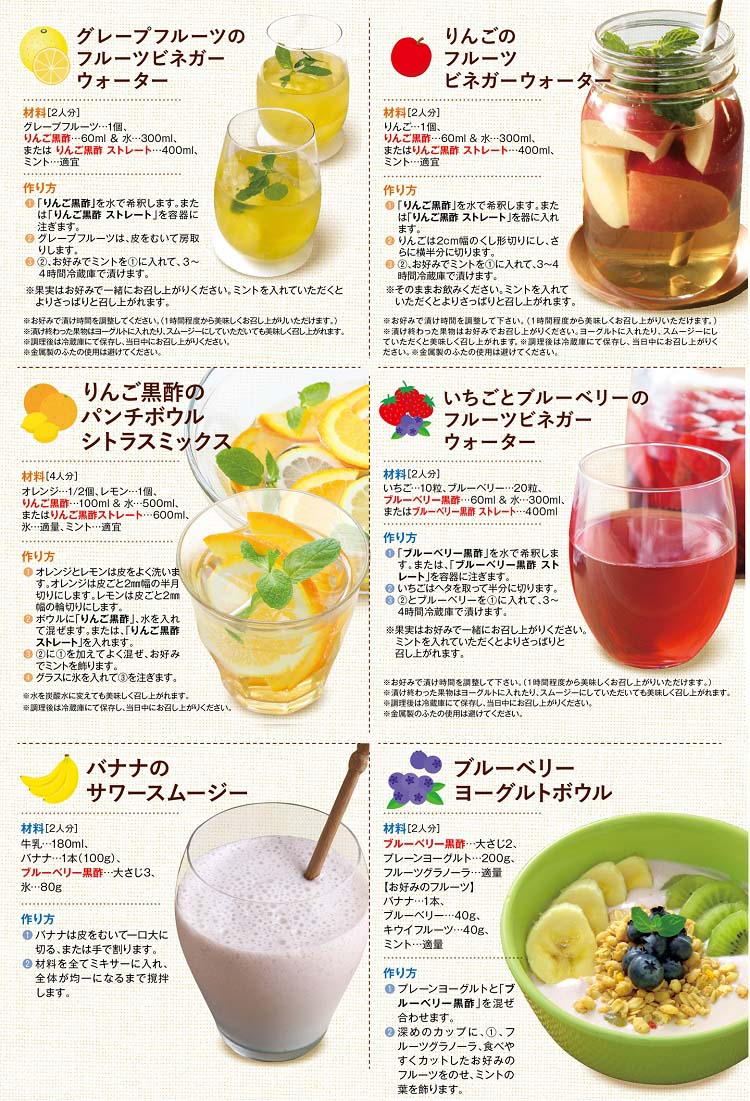 | 一日摂取目安量(60ml)当たり エネルギー:32kcal、たんぱく質:0g、脂質:0g、炭水化物:8.2g、糖質:8.2g、食物繊維:0g、食塩相当量:0.014g、酢酸:750mg |