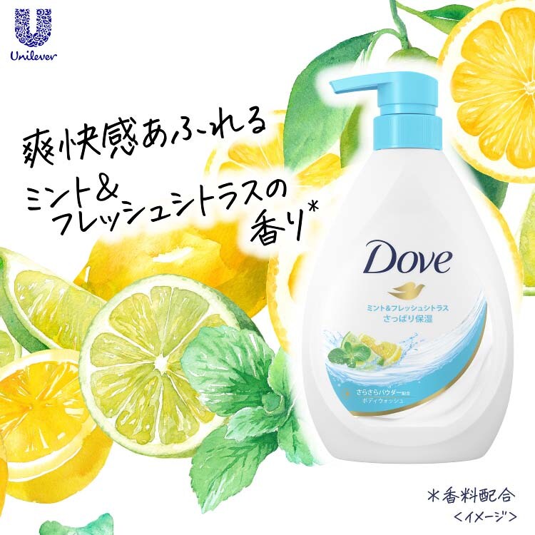 ●爽快感あふれるミント&フレッシュシトラスの香り(香料配合)のダヴボディウォッシュ。
