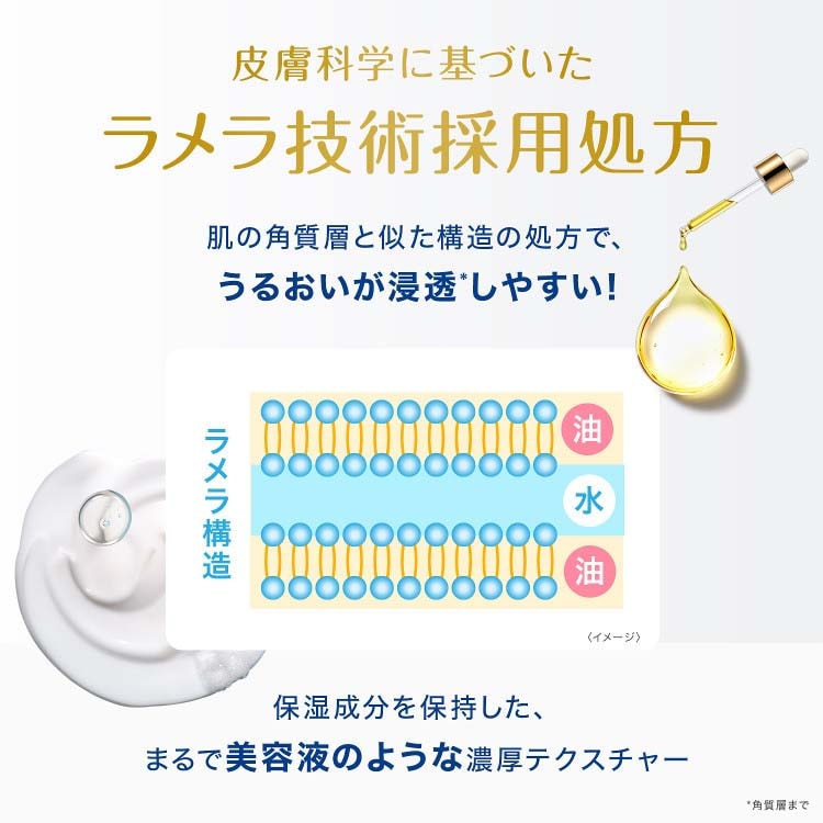 ●ラメラ技術採用処方となじませ洗いで、肌の奥(角質層)にうるおいを閉じ込める。