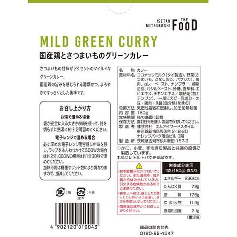 【国産鶏とさつまいものグリーンカレーの商品詳細】