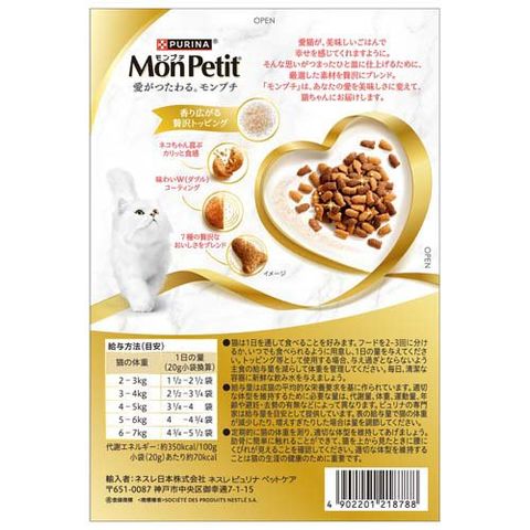 ・給与量は成猫の平均的な栄養要求を基に作られています。適切な体型を維持するために必要な量は、代謝量、体重、運動量、年齢や避妊・去勢の有無などによって異なります。
