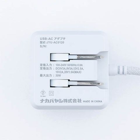 ●柔らかいケーブル採用のコンパクトなキューブデザインUSB PD充電器(30W)。