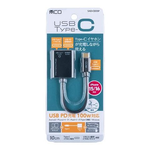 【MCO Type-C イヤホン変換ケーブル USB PD対応 SAD-CE05PBKの商品詳細】