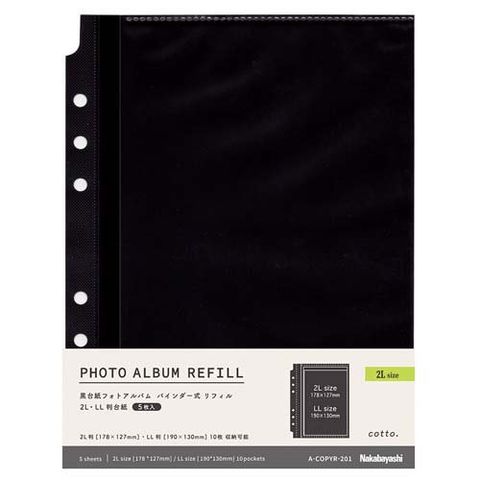 ●cotto. 黒台紙フォトアルバム用 補充台紙 6穴・バインダー式/2L判1段ポケット台紙 5枚入 A-COPYR-201