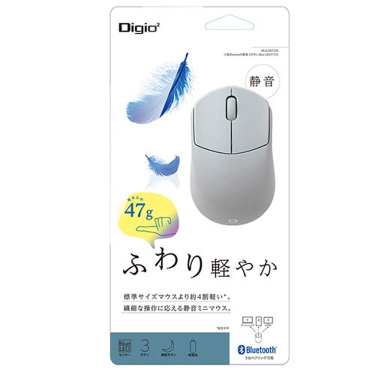 【Digio 小型Bluetooth静音3ボタン BlueLEDマウス ふわり軽やか グレー MUS-BKT250GYの商品詳細】
