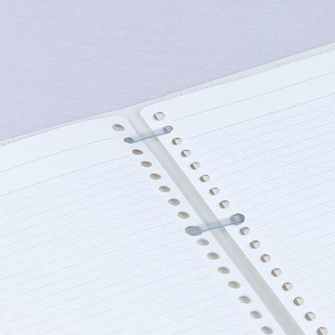 ●超フラット設計・・・バインダーの特徴であるリングの厚みを解消し、フラットを追求したバインダーノートです。筆記時に手に当たっても気にならない超薄型綴具「フラットバー」を採用しました。最大50枚までリーフの差し替え、追加が可能です。