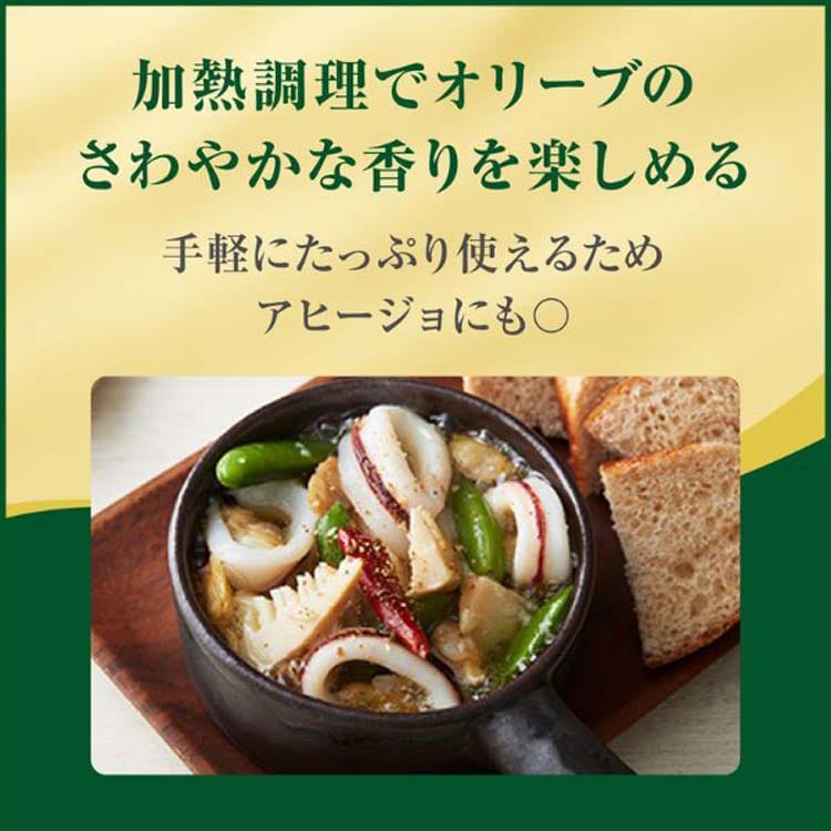 ●加熱調理に適しています。いつもの油より料理をもっとおいしく仕上げます。苦味・辛みの穏やかなエクストラバージンオリーブオイルを使用しているので、クセがなく、すっきり。幅広い料理にお使いいただけます。揚げものや炒めものにぜひお使いください。