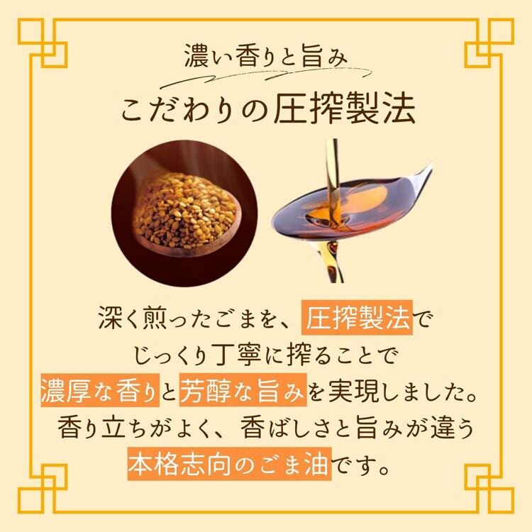 ●深く煎ったごまを圧搾製法でじっくり丁寧に搾ることで、濃厚な香りと豊醇な旨みを実現しました。