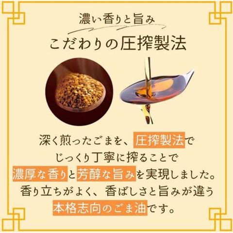 ●深く煎ったごまを圧搾製法でじっくり丁寧に搾ることで、濃厚な香りと旨みを実現しました。