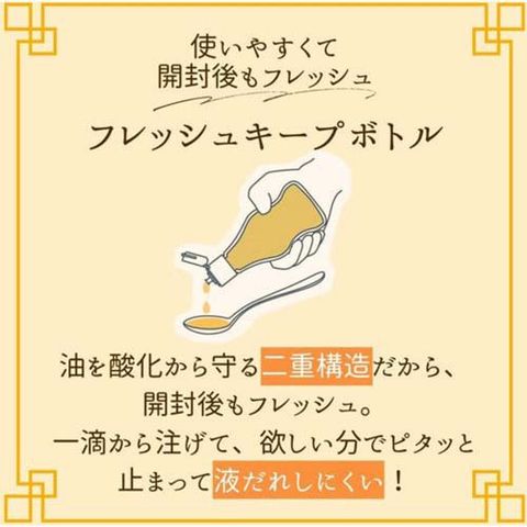 ●香り立ちがよく、香ばしさと旨みが感じられる本格志向のごま油です。