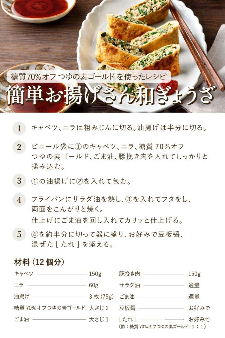 ●砂糖由来の糖質をまるごとオフ、贅沢に使ったかつお節だしの旨みで、おいしさそのまま糖質を70%低減したつゆの素です。