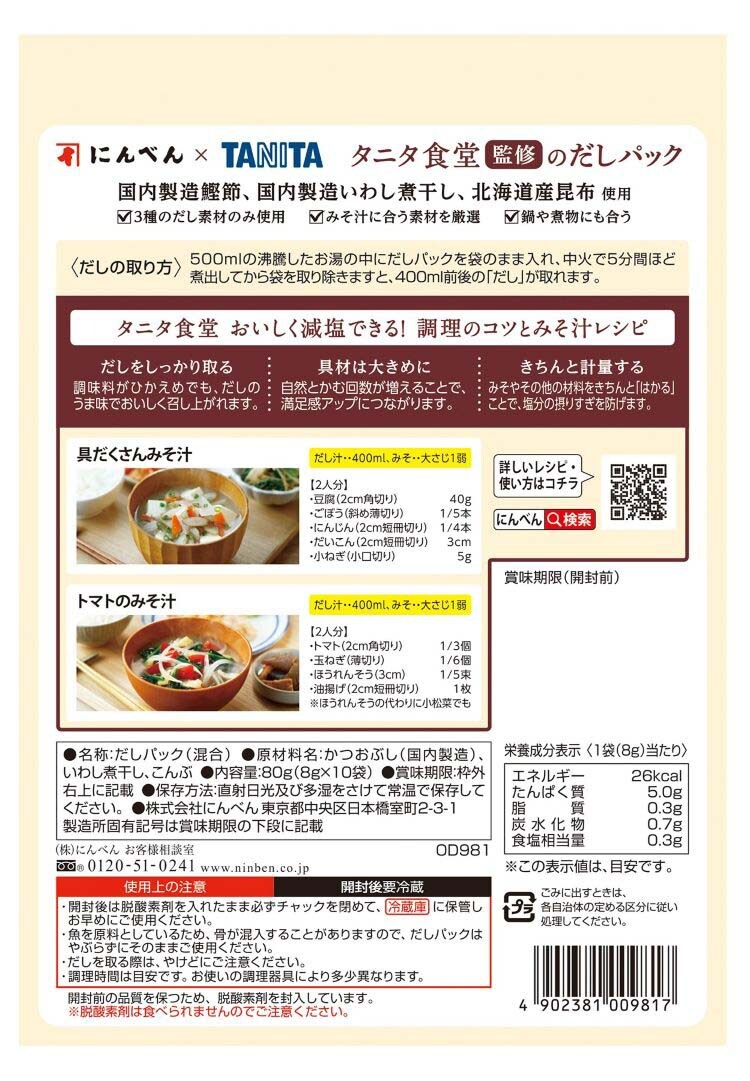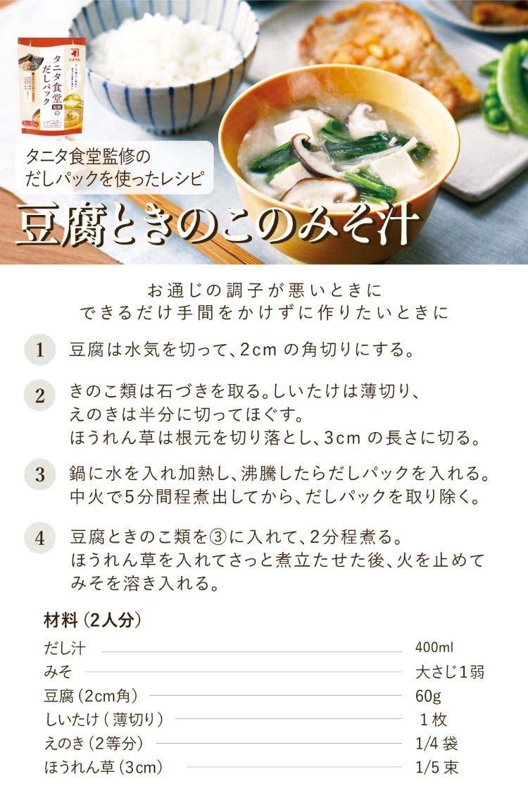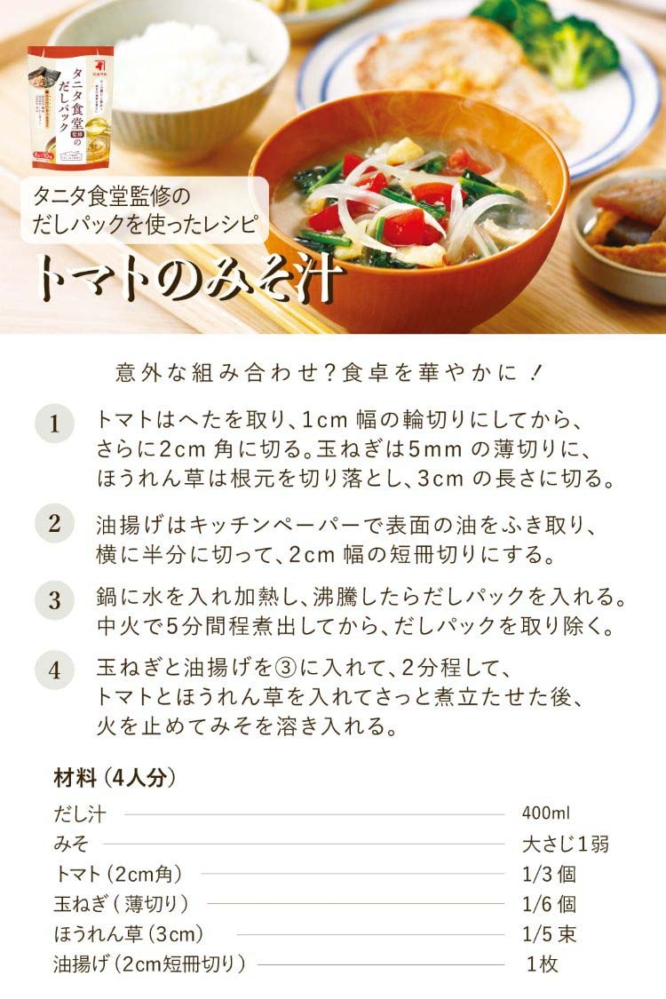 ●和食では欠かせない「だし」を通じて毎日の健康づくりをサポートしたいという想いから、タニタ食堂の監修のもと、「みそ汁によく合うだしパック」を共同開発しました。