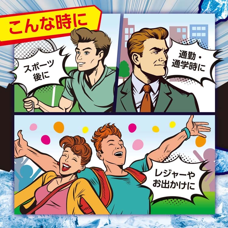 ●極冷えシートが汗・ベタつき・ニオイのもとをスッキリふき取ります。