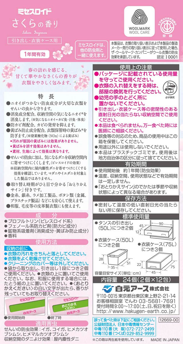 【ミセスロイド 引き出し用 1年防虫 さくらの香りの商品詳細】