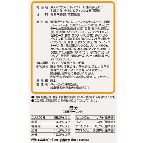 【メディファスアドバンス 2種の尿石ケア 1歳から チキン&フィッシュ味の商品詳細】