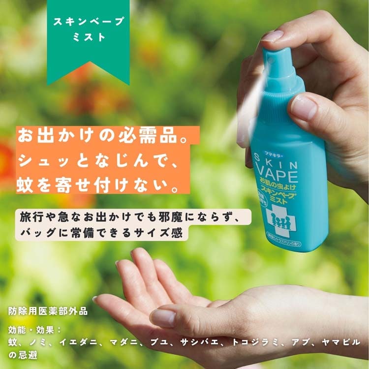 ●バッグに収まるコンパクトサイズで、旅行やキャンプ、急なお出かけにも最適。快適な使用感にこだわった、水性タイプの虫よけです。