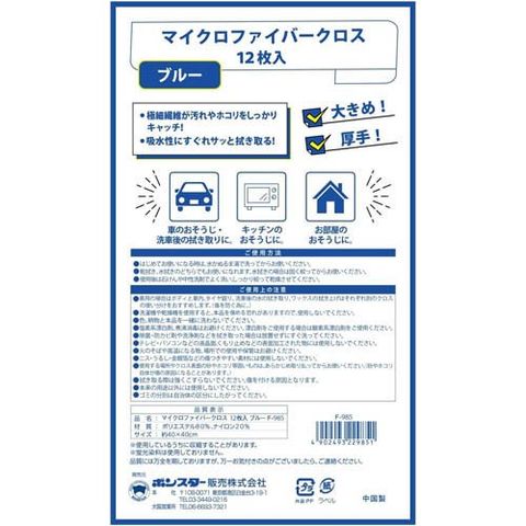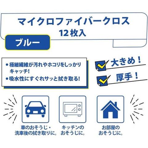 ボンスター マイクロファイバークロス 大判 厚手 ブルー (12枚)