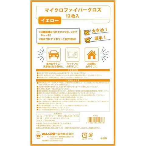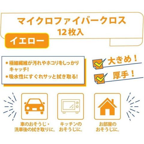 ボンスター マイクロファイバークロス 大判 厚手 イエロー (12枚)