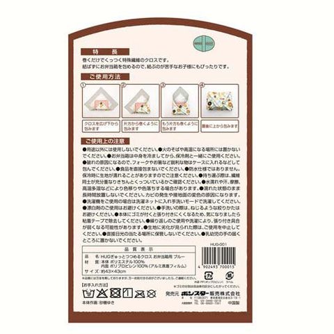 HUG ぎゅっとつつめるクロス お弁当箱用 ブルー (1枚)