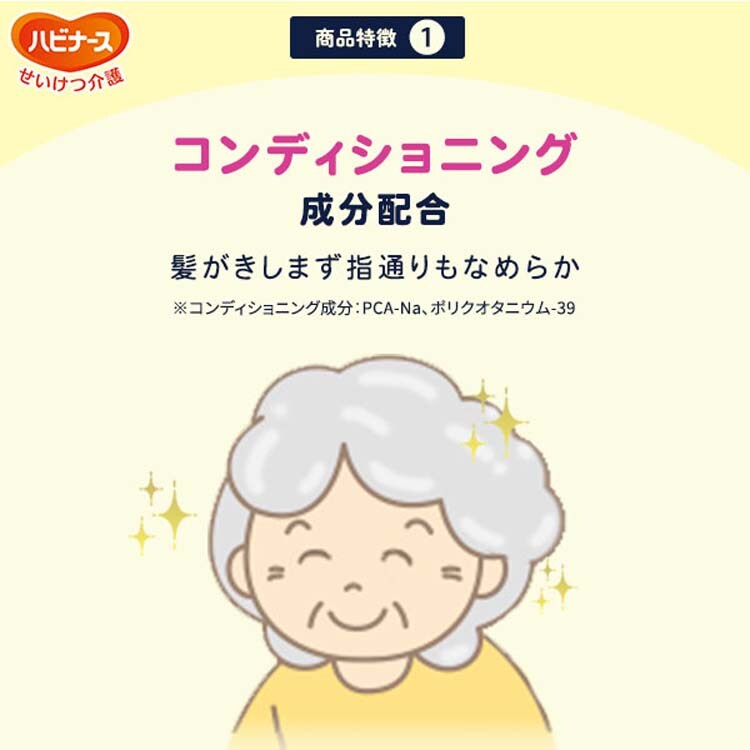 ●コンディショニング成分配合、髪がきしまず指とおりもなめらか。