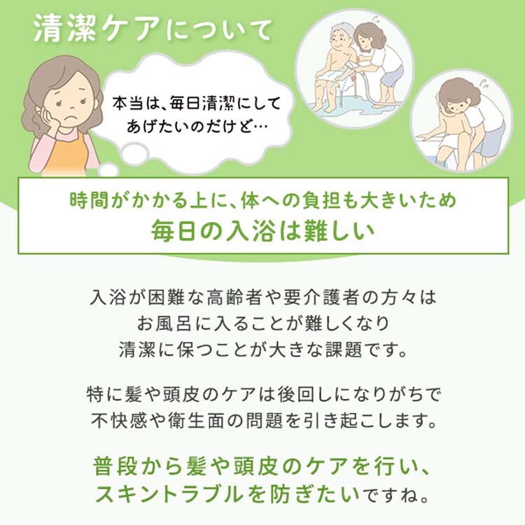●入浴できない時、髪と頭皮の汚れ・ニオイをすっきり落とす簡単ケア。