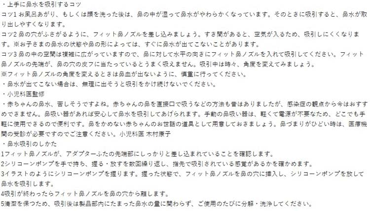 ・洗った部品は、完全に乾燥させてから使用する。鼻水の吸引ができないおそれがあります。