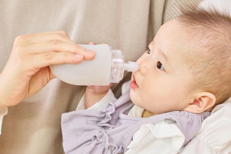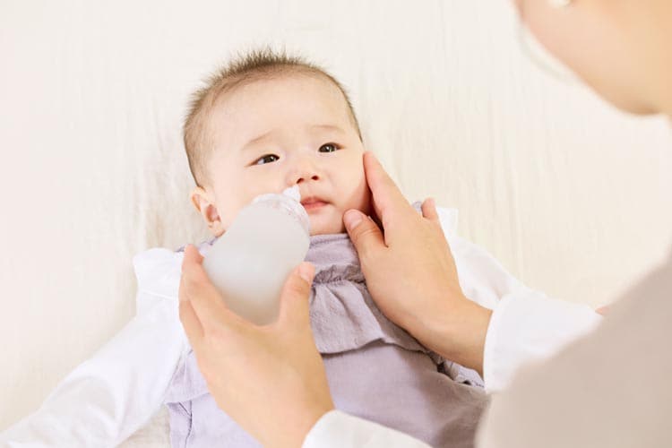 ・ 鼻水を吸引しても鼻水が出なかったり、極端に少なかったりする場合は、無理して吸引せずに医師に相談する。