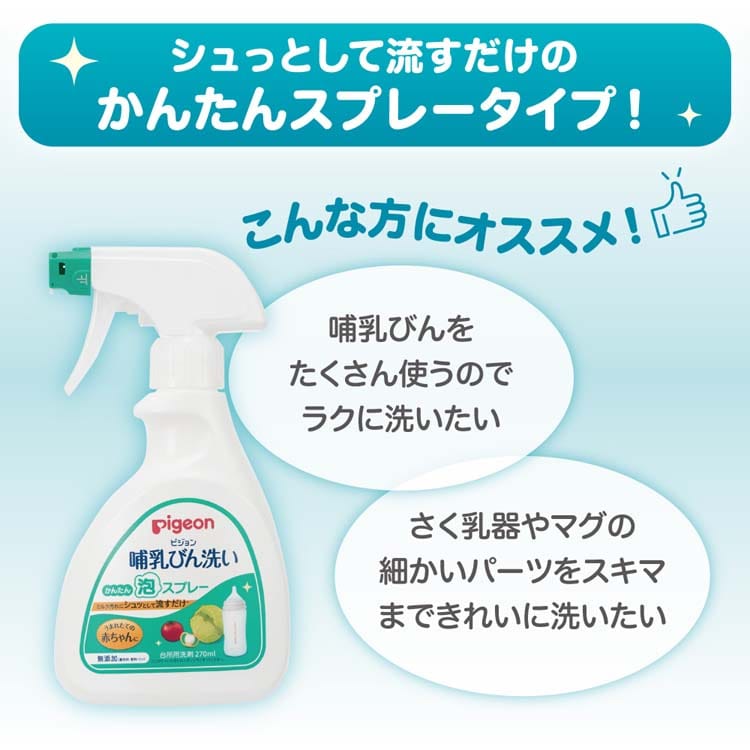 ●ミルク汚れにシュっとして流すだけのかんたん泡スプレー!植物由来の洗浄成分の哺乳びん洗いです。