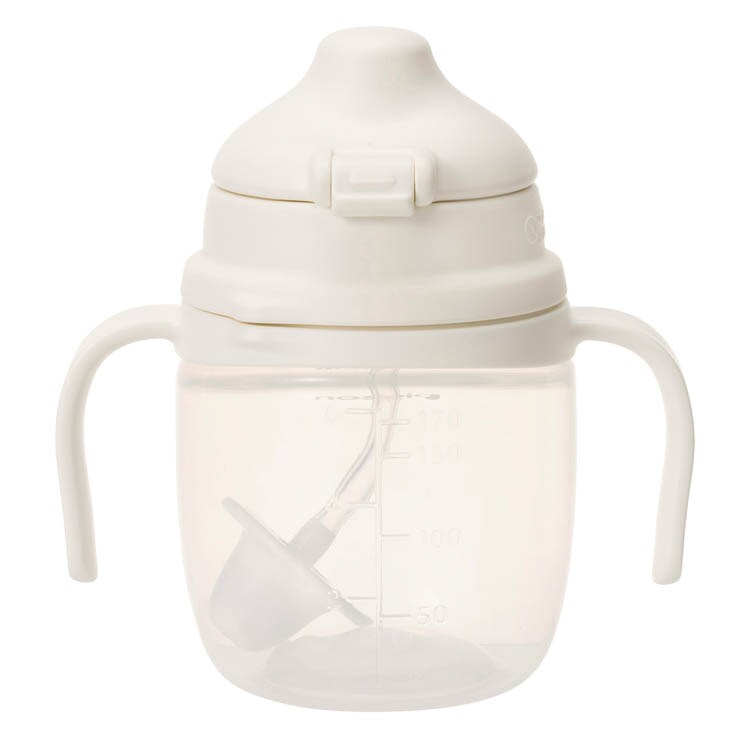 赤ちゃん一人ひとりの成長のペースに合わせて、使い慣れた母乳実感哺乳びんで、コップ飲み、ストロー飲みができます。