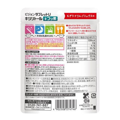 タブレットU キシリトール+フッ素 もぎたてりんごミックス味 (65粒)