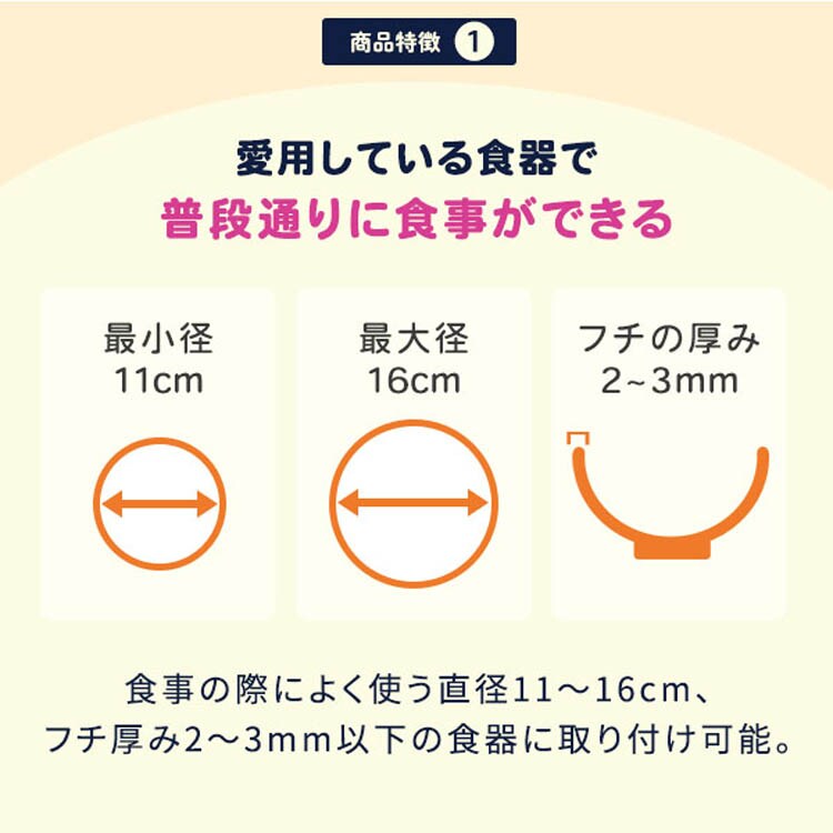 ●直径11~16cm、フチの厚み2~3mmの食器に取り付け可能