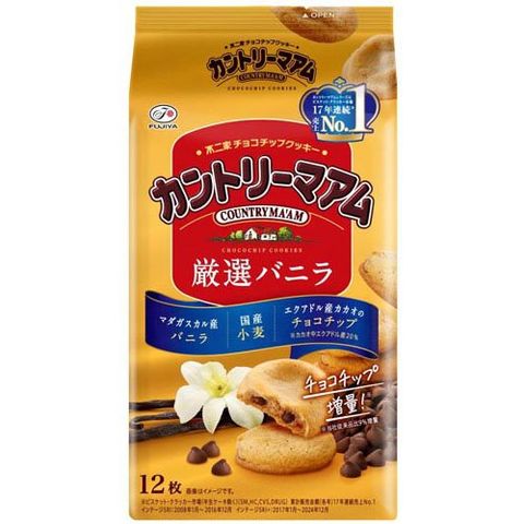 ●風味豊かな国産小麦、マダガスカル産バニラ、華やかに香るエクアドル産カカオの自家製チョコチップをたっぷり使用した、バニラ感溢れる贅沢なカントリーマアム。