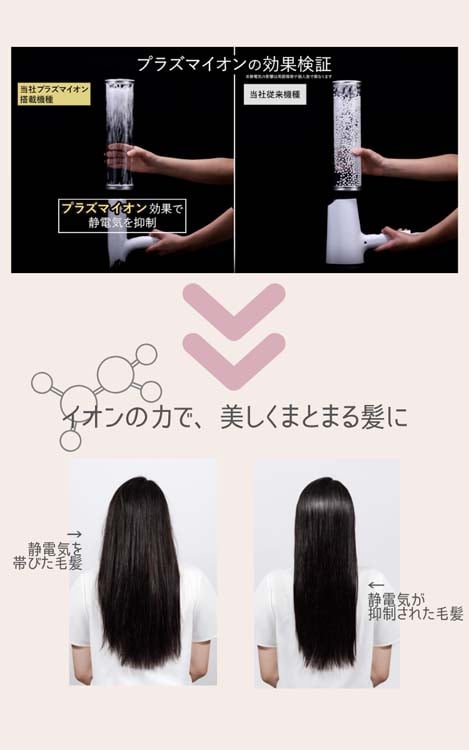 ●パワフルな風とプラズマイオン 髪をいたわり、優しくケア