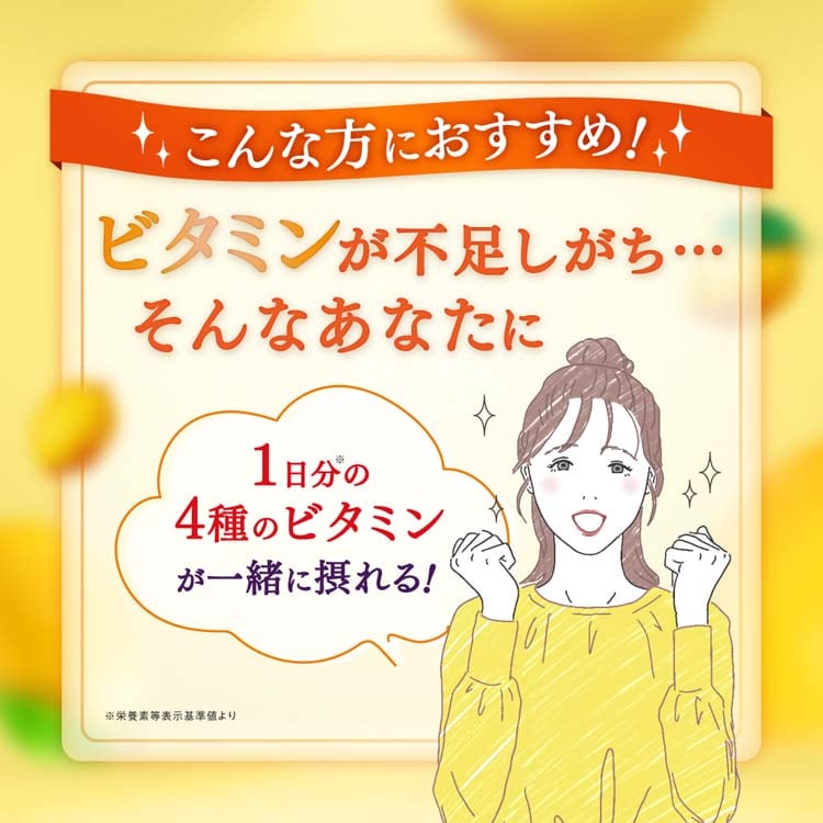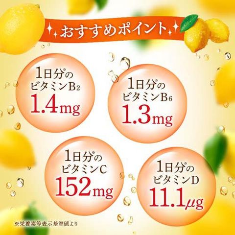 ●ビタミンB2、B6、C、D配合。1日分*のマルチビタミンをお手軽に接種できます。*栄養素投票時基準値より