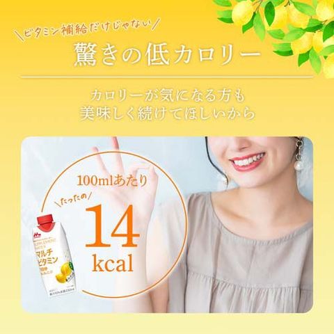 | 1本(330ml)当たり エネルギー:47kcal、たんぱく質:0g、脂質:0g、炭水化物:11.8g、食塩相当量:0g、ビタミンB2:1.4mg、ビタミンB6:1.3mg、ビタミンC:152mg、ビタミンD:11.1μg |