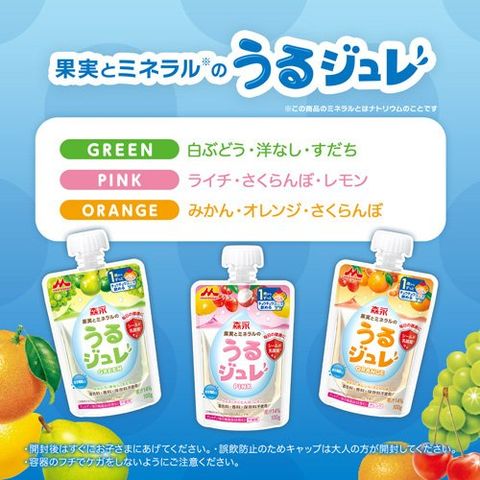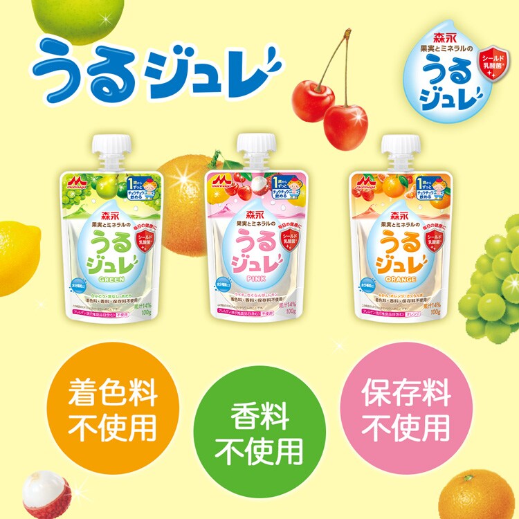 | ★GREEN:果実(白ぶどう(アルゼンチン)、洋なし、すだち)、果糖ぶどう糖液糖、食塩、乳酸菌(殺菌)/ゲル化剤(増粘多糖類)、乳酸Ca、クエン酸 ★PINK:果実(ライチ(台湾)、さくらんぼ、レモン)、果糖ぶどう糖液糖、ライチエキス、食塩、乳酸菌(殺菌)/ゲル化剤(増粘多糖類)、乳酸Ca、クエン酸 ★ORANGE:果実(うんしゅうみかん(韓国)、オレンジ、さくらんぼ)、果糖ぶどう糖液糖、食塩、乳酸菌(殺菌)/ゲル化剤(増粘多糖類)、乳酸Ca、クエン酸 |