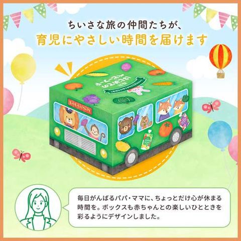 ●持ち運びしやすいスパウト付きパウチを使用し、中身はスプーンであげやすいようになめらかなペースト状に仕上げているため、いつでもどこでもお子さまに食べさせられるのが特徴です。
