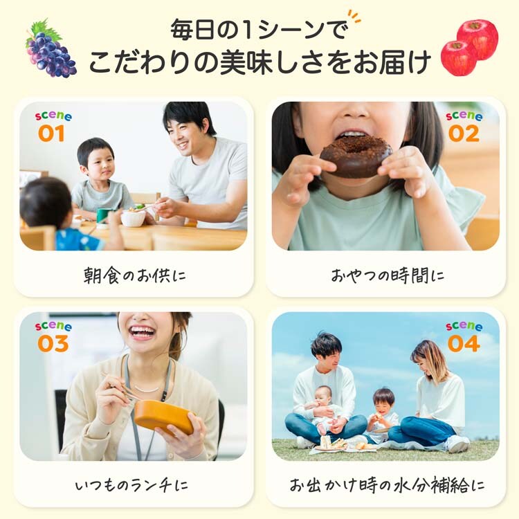 ・果汁の成分が沈殿したり、色調が異なることがありますが、品質には問題ありません。