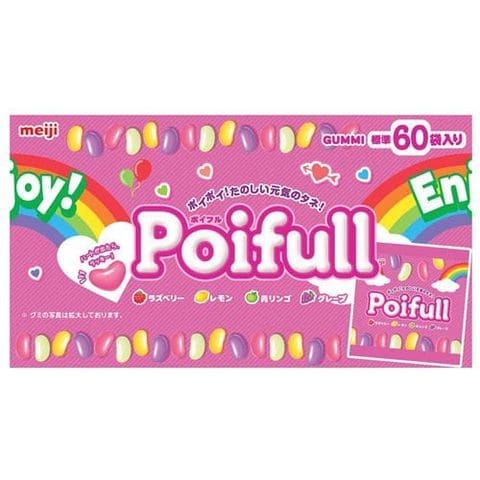 | 砂糖(国内製造、外国製造)、水あめ、ゼラチン、濃縮果汁(ぶどう、りんご、レモン、ラズベリー)、デキストリン、食用油脂、でん粉/ソルビトール、酸味料、セルロース、増粘多糖類、光沢剤、香料、着色料(アントシアニン、スピルリナ青、カロチノイド)、(一部にりんご・ゼラチンを含む) |