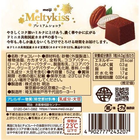 | 砂糖(外国製造)、植物油脂、カカオマス、全粉乳、ココアバター、ローストバターパウダー、脱脂粉乳、ココアパウダー、クリーミングパウダー/乳化剤、香料、(一部に乳成分・大豆を含む) |