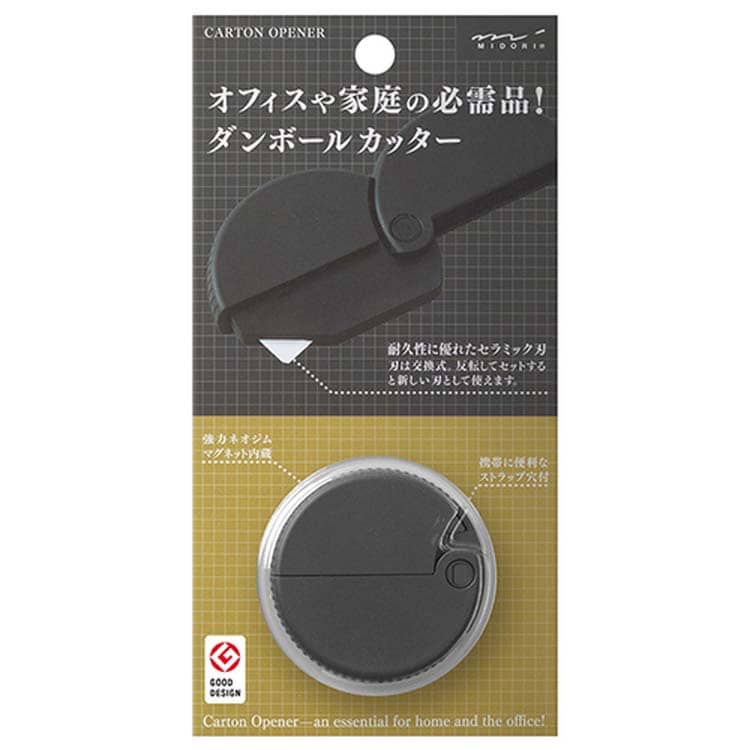 ミドリ ダンボールカッター 黒A マグネット内蔵 ストラップ穴付 35409006 (1個)