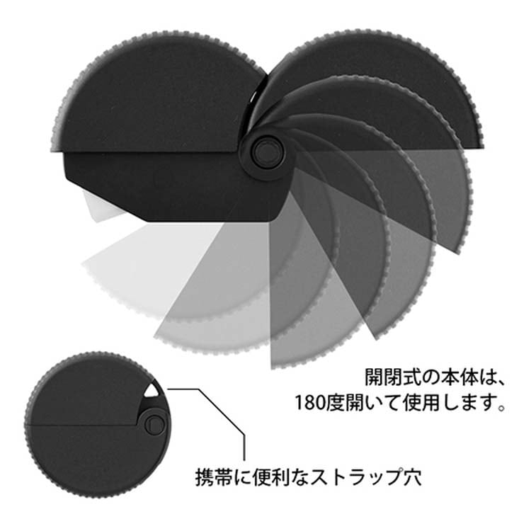 | 本体サイズ:H50×W50×D12.5mm。保管方法:マグネットで留めて保管。(材質)ABS+グラスファイバー製。刃:セラミック製。マグネット内蔵。 |