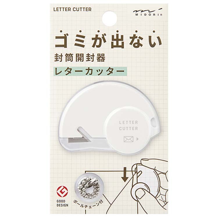 ミドリ ゴミが出ない封筒開封器 レターカッター 白 ボールチェーン付 35553006 (1個)
