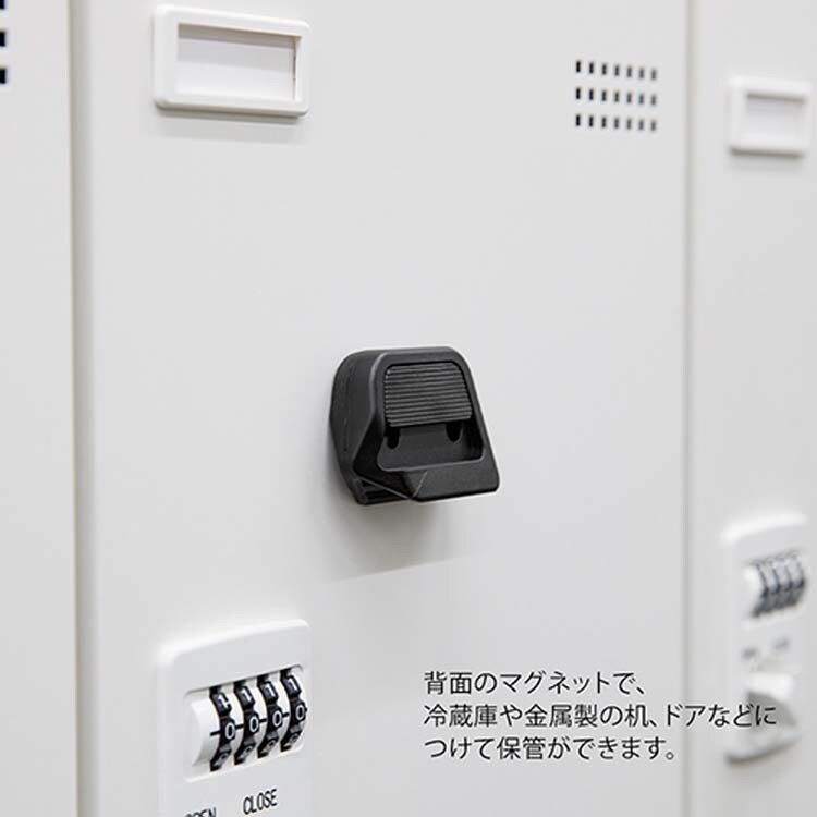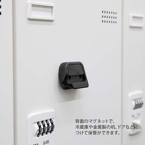 ●背面についたマグネットシートで、ドアや冷蔵庫などの金属面に留めて保管が可能です。