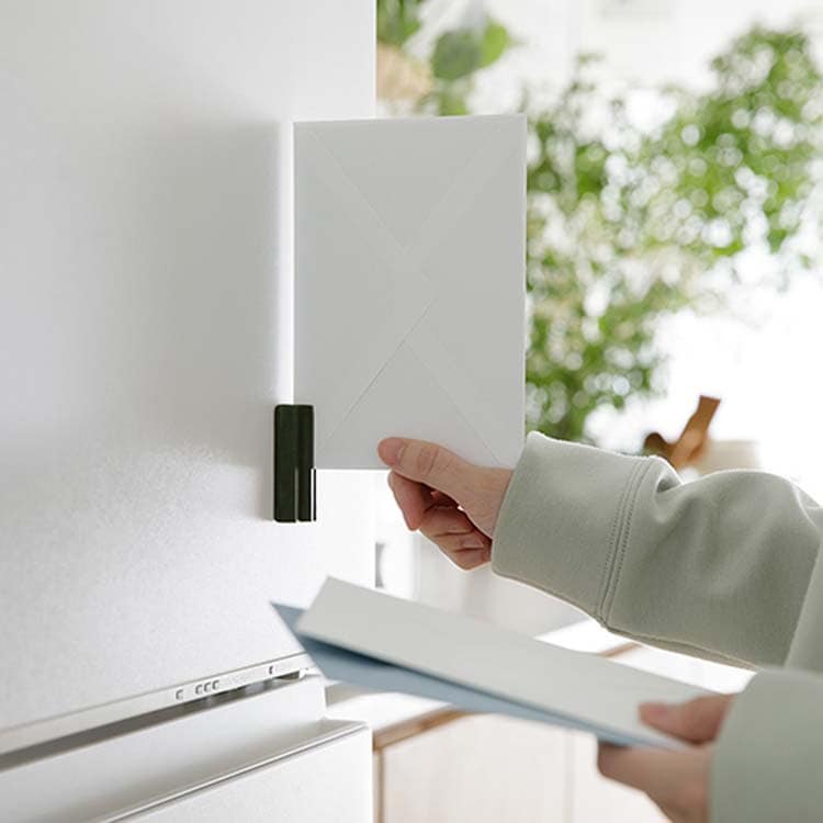 ●背面に強力マグネットが内蔵されているため、マグネットがつく壁面に固定させたままでも使用することができるレターカッターです。