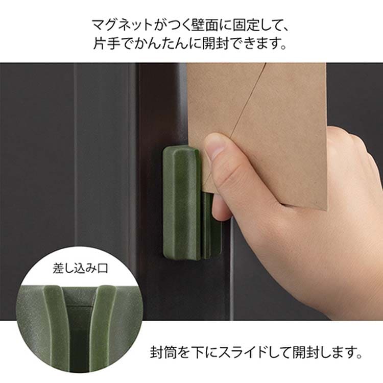 ミドリ ゴミが出ない封筒開封器 マグネットレターカッター カーキ 49736006 (1個)