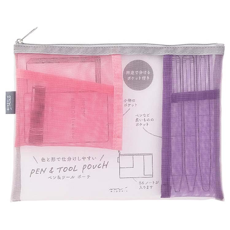 ミドリ ペン&ツールポーチ メッシュ ピンク 53346006 (1個)